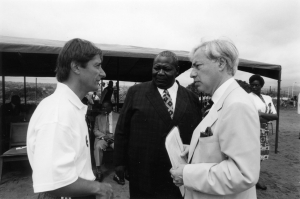 - Claude « Didi » Andrey, le professeur Pierre Tsalambala et Dimitri Angelopoulos, lors de l’inauguration du centre de formation de football à Yaounde.